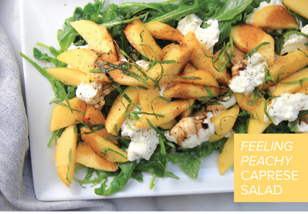 IN THIS ISSUE, we turn sweet peaches into a savory dish with this caprese-like salad. This well-balanced salad features ripe peach slices, fresh burrata, and spicy arugula tossed in a bright dressing. Complete this stunning dish with a garnish of mint and a drizzle of balsamic reduction.