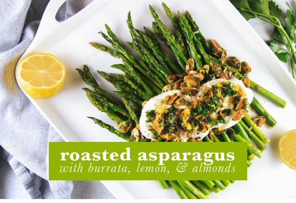 Roasted Asparagus with Burrata, Lemon, and Almonds